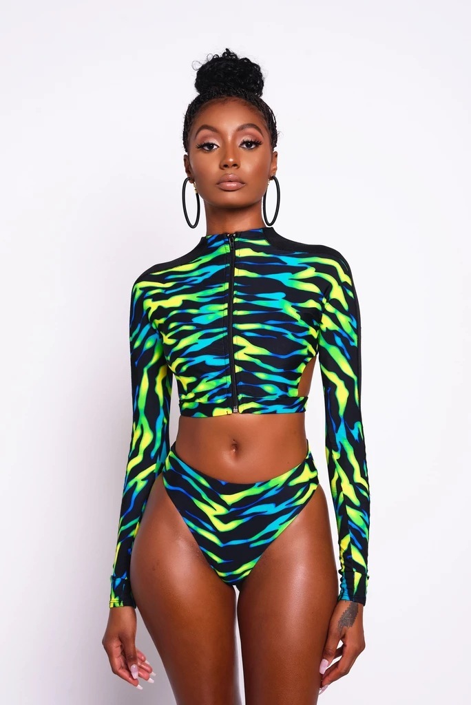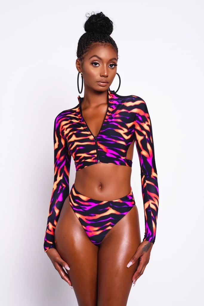 Faites-vous remarquer cette saison avec notre Bikini dos nu avec fermeture éclair Ce maillot de bain est conçu pour combiner la mode et la fonctionnalité de manière transparente. Le col licou offre un soutien supérieur et un ajustement personnalisé, tandis que la fermeture éclair élégante sur le devant ajoute une touche de modernité à votre look de maillot de bain.