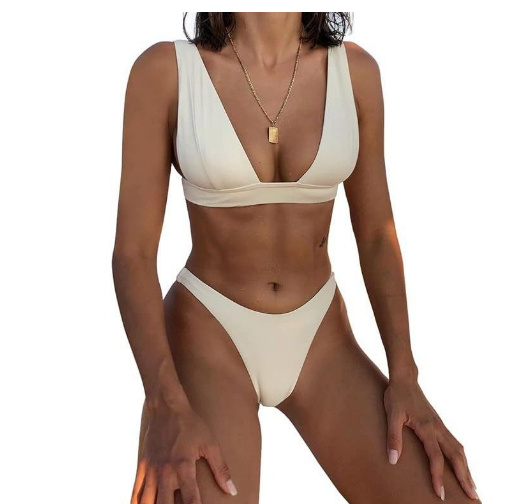 Bikini européen et américain Bikini fendu de couleur unie Maillot de bain taille haute